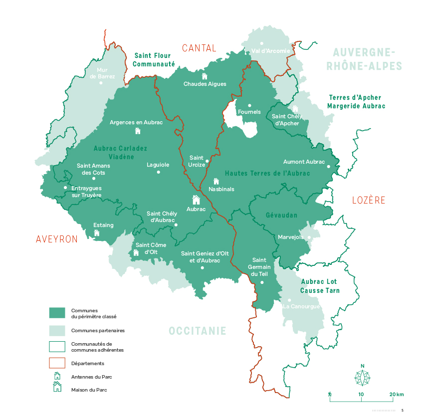 Le Syndicat mixte de gestion et d’aménagement du Parc de l’Aubrac est composé non seulement des communes du périmètre classé mais également de communes partenaires qui ont volontairement adopté la Charte du Parc.