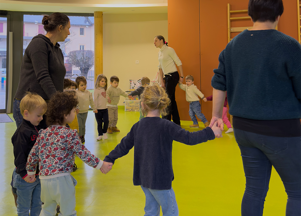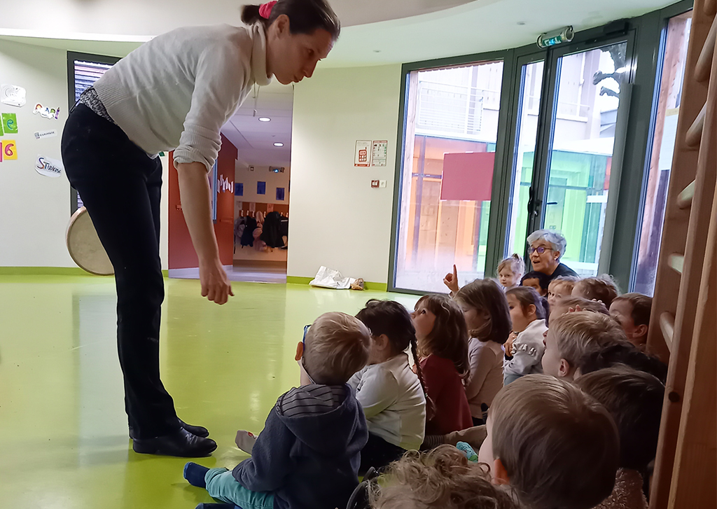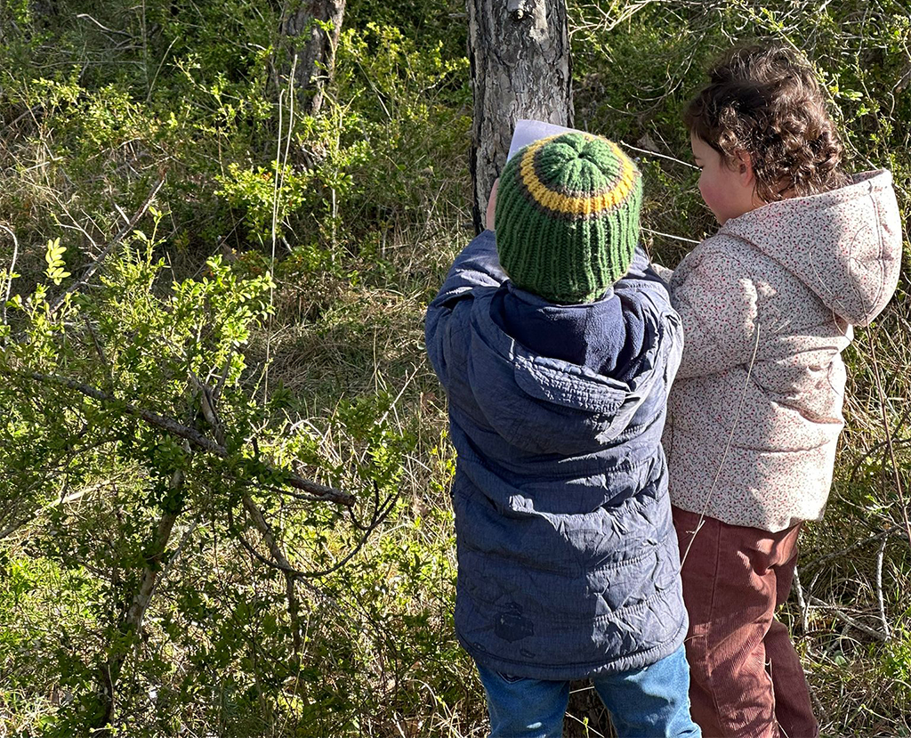 A petits pas, grâce aux interventions de Stéphanie Pélissier, accompagnatrice en montagne, les enfants sont invités à plonger dans un univers féérique où chacun peut observer, ressentir, jouer, récolter, classer, comprendre… Des découvertes et des expériences qui sont ancrées et réinvesties en musique et en gestes avec l’écriture collective d’une comptine mimée orchestrée par Clara Madec, conteuse et musicienne.